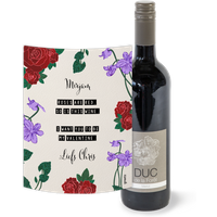 Ben je op zoek naar een origineel geschenk waarop je je foto kunt laten bedrukken? Wat dacht je hiervan: Verras iemand met een heerlijke fles Duc la foret met romantisch etiket. Op het etiket staat de tekst: ‘Roses are red, so is this wine. I want you to be my valentine’. Ook kun je de naam van je geliefde en jouw naam toevoegen. Waar wacht je nog op? Verras iemand met dit romantisch etiket.