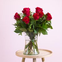 Ben je op zoek naar een origineel geschenk waarop je je foto kunt laten bedrukken? Wat dacht je hiervan: Wie ga jij verrassen met dit prachtige boeket rode rozen? Soms zeggen bloemen meer dan 1000 woorden. Stuur dit boeket rode rozen als verrassing naar jouw liefde en tover een glimlach op het gezicht van de ontvanger. Wacht niet langer en verstuur dit romantische cadeau. Toch liever een ander boeket? Bekijk dan onze andere bloemen ! Waarom Greetz: Dit boeket is te bestellen met jouw persoonlijke boodschap op een (mini)kaart naar keuze. Wij bezorgen onze bloemen vers van de veiling. Op water bezorgd en geleverd met snijbloemvoeding. Bloemen verzorgingstips: Bij rozen is het extra belangrijk om direct bij ontvangst 2 cm van de steel schuin af te snijden. Doe dit met een scherp mesje. Verwijder overtollig blad van de stelen. Deze nemen namelijk voeding weg, die je liever naar de bloemknop wilt hebben. Schrap de steel niet kaal, dit veroorzaakt wondjes op de steel met grote kans op schade aan de bloem door bacteriën. Doornen mogen gewoon blijven zitten. Plaats ze in een schone vaas en voeg snijbloemenvoedsel toe. Bij voorkeur speciale voeding voor rozen. Ben je op zoek naar meer informatie over rozen? Vind hier alles over o.a. verzorgingstips, combinaties, kleuren en betekenissen. Boeket samenstelling: 12 rode rozen Divers sierblad