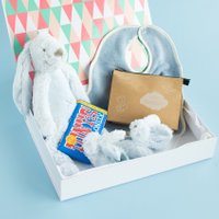 Ben je op zoek naar een origineel geschenk waarop je je foto kunt laten bedrukken? Wat dacht je hiervan: Hoera! Een jongen geboren. Dat moet gevierd worden. Met dit kraampakket verras je de kersverse papa & mama met een doos vol met fijne spulletjes. Deze zullen voor de kersverse ouders én de kleine vast goed van past komen. In dit kraampakket zitten de volgende producten: Happy Horse Rabbit Richie knuffel blauw Happy Horse Rabbit Richie sloffen blauw Koeka slabbetje Rome blauw Tiny Rituals Baby Giftset (bodylotion – 50 ml, hair & bodywash – 50 ml, baby bath oil – 75 ml) Tony’s Chocolonely chocoladereep Donkere Melk 180 gram Het geheel zit feestelijk verpakt in een mooie doos. Laat de doos inpakken voor een nog mooier verrassingseffect!