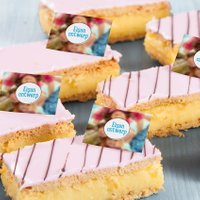 Ben je op zoek naar een origineel geschenk waarop je je foto kunt laten bedrukken? Wat dacht je hiervan: Zoet roze glazuur, knapperig bladerdeeg en een dikke laag romige banketbakkersroom. Het is een gouden combinatie: de tompouce. Onze tompoucen hebben ook nog een subtiele chocolade garnering. Hoe eet je hem het beste? Daar heeft iedereen zijn eigen mening over. Wij zijn in elk geval van mening dat hoe je hem ook eet, hij in elk geval heerlijk smaakt! Je kunt gemakkelijk een logo toevoegen aan de tompouce om het extra speciaal te maken. Waarom Greetz? Als je de tompoucen vandaag bestelt, worden deze morgen bezorgd (met uitzondering van zondag). De tompoucen wordt gekoeld getransporteerd en in een mooie gebaksdoos afgeleverd. Gemakkelijk te personaliseren Onze tompoucen worden elke dag vers gemaakt door onze banketbakker. Product informatie De tompoucen worden verpakt per 6 stuks of 12 stuks Bewaaradvies: gekoeld Houdbaarheid: 2 dagen na bezorging Allergenen: Gluten, Lactose , Eieren, Cacao, let op kan sporen van noten bevatten