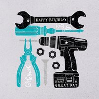 Ben je op zoek naar een origineel geschenk waarop je je foto kunt laten bedrukken? Wat dacht je hiervan: Op deze leuke mannelijke verjaardagskaart van Hotchpotch So Macho zie je allemaal gereedschap.
