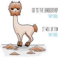 Ben je op zoek naar een origineel geschenk waarop je je foto kunt laten bedrukken? Wat dacht je hiervan: Grappige kaart van Inkari met een kaalgeschoren alpaca. Daarnaast zie je de tekst: go to the barbeshop the said. It will be fun they said.